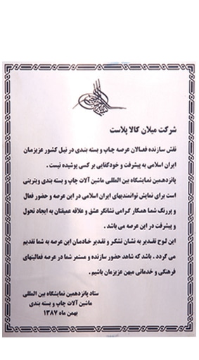 گروه صنعتی میلان پلاست از سال ۱۳۵۷ فعالیت تولید ظروف وقطعات پلیمری را آغاز نمود و حوزه ی فعالیت خود را در زمینه قالبسازی گسترش داد. پس از سالیان متمادی تجربه تولید مصنوعات پلاستیک با شناخت کلیه موانع تولید و اشراف به ماشین آلات صنعت پلاستیک اعم از تزریق و بادکن و... به واردات و ساخت ماشین آلات پلاستیک نمودیم و در جهت برطرف نمودن هرچه بهتر نیاز مشتری طی تحقیقات گسترده برای یافتن برترین برند ماشین تزرق پلاستیک با شرکت ساند اولین و بزرگترین تولید کننده ماشین آلات صنعت پلاستیک در کشور چین آشنا گشتیم . ماشین آلات تزریق میلان با بهره گیری از بهترین ماشین کاری CNC ، در دقت و سرعت با معتبرترین ماشین آلات تزریق صنعت پلاستیک جهان قابل قیاس است . این مجموعه در راستای مشتری مداری از طریق ارائه به موقع خدمات اعم از : فروش ، پس از فروش ، گارانتی و وارانتی ، با بکار گیری نیروی انسانی متخصص و کار آمد اقدام می نماید. شرکت میلان کالا پلاست در سال ۱۳۹۶ به واسطه کیفیت بالا و نوآوری به کار گرفته شده در ماشین آلات خود به معدود شرکت های high tech با تکنولوژی بالا پیوسته است تاکنون افتخار همکاری با مجموعه های به نامی را داشته است و بازار فروش خود را در کشور های آذربایجـــان ، عــراق ، افغانستان و....گسترانیده است . این شرکت با اعتقاد به اینکه مشتری ، سرمایه ، اعتبار وآینده شرکت می باشد برای رضایت مندی و ارائه خدمات بهتر به آنان از هیچگونه تلاشی دریغ نمی نماید.